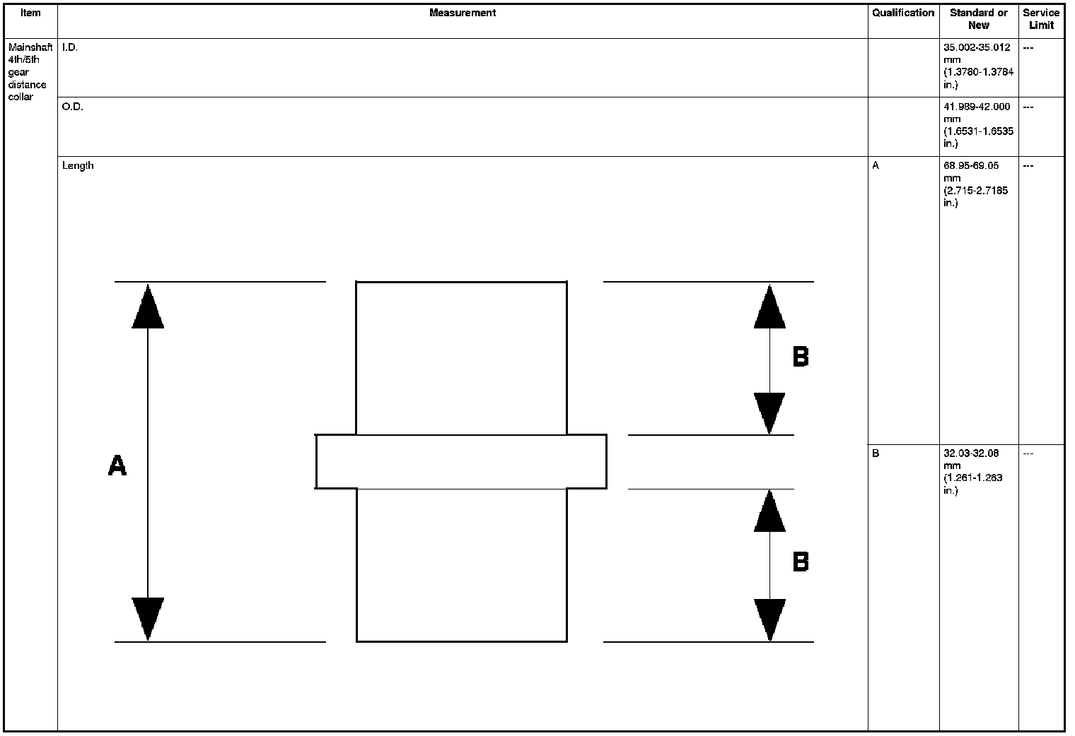 Mainshaft 4th/5th Gear Distance Collar Specifications