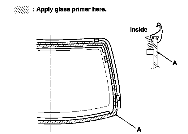 18. Apply a light coat of glass primer with a sponge applicator around the edge of the glass (A), then lightly wipe it off with gauze or cheesecloth: