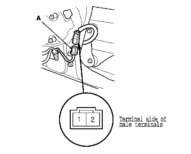 2. Disconnect the 2P connector (A) from the passenger's power window motor.