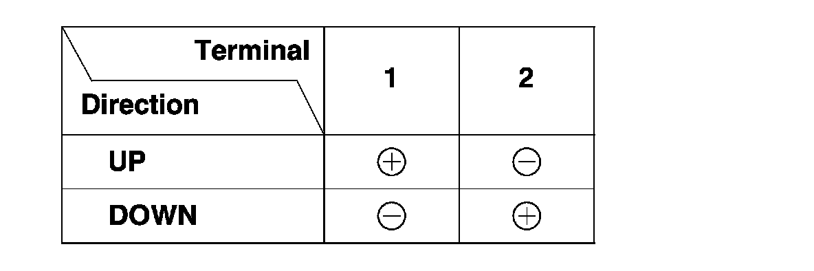 3. Check window motor operation by connecting power and ground according to the table. When the motor stops running, disconnect one lead immediately.