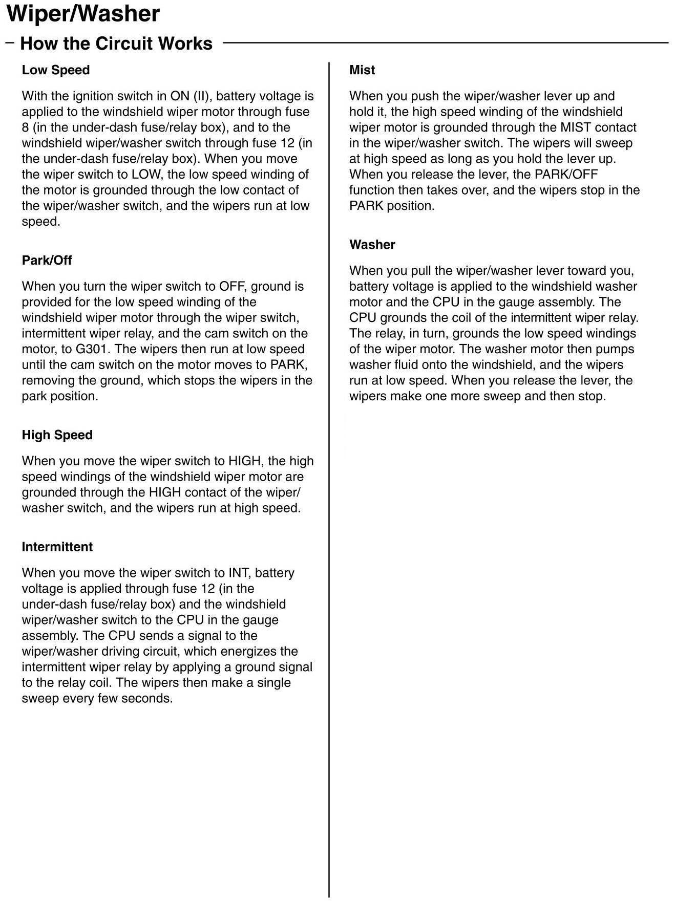 Wiper and Washer Systems: Description and Operation