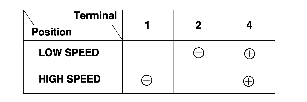 4. Test the motor by connecting battery power and ground according to the table. If the motor does not run or fails to run smoothly, replace the motor.