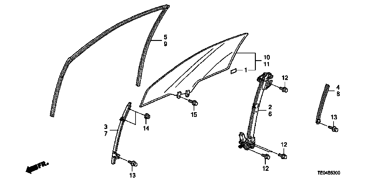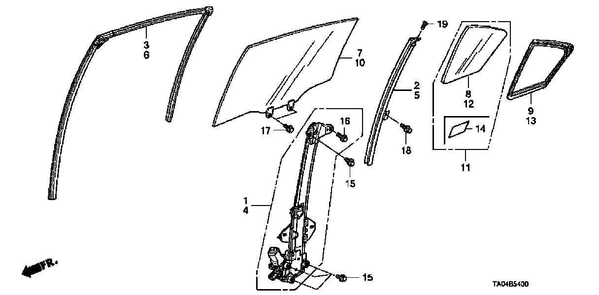 Door Glass - Regulator, 4 Door, Front Door: