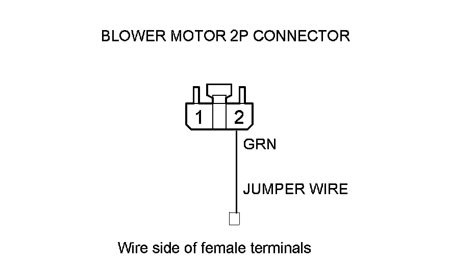 12. Connect blower motor 2P connector terminal No. 2 to body ground with a jumper wire.