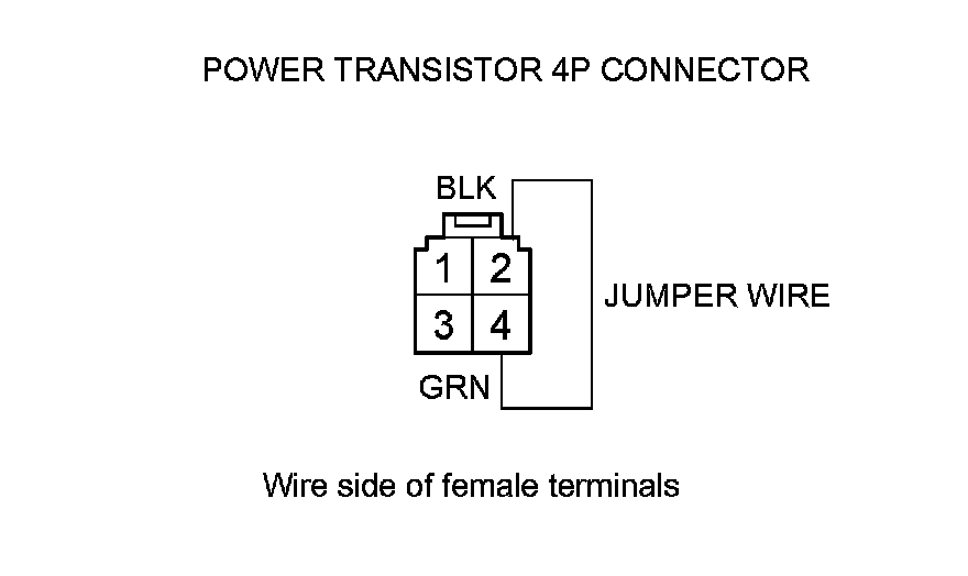18. Connect power transistor 4P connector terminal No. 2 and No. 4 with a jumper wire.