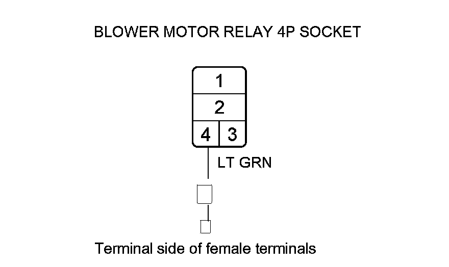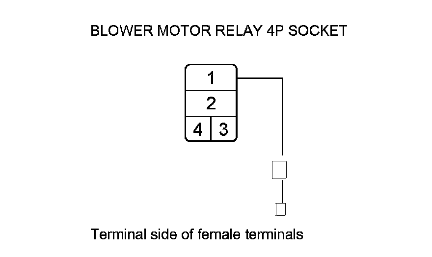 34. Measure the voltage between blower motor relay 4P socket terminal No. 1 and body ground.