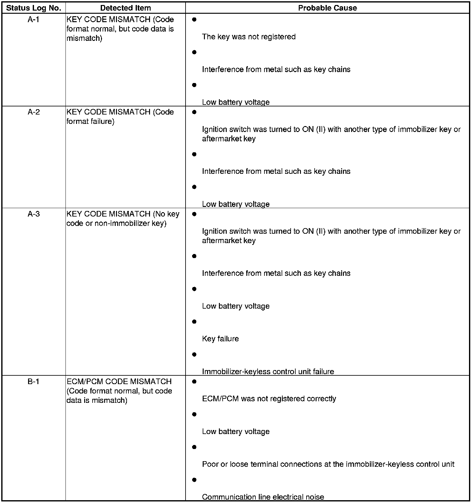 If you suspect there is a immobilizer system problem, check the status log.