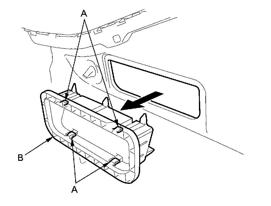 2. Release the hooks (A), then remove the rear air outlet (B).