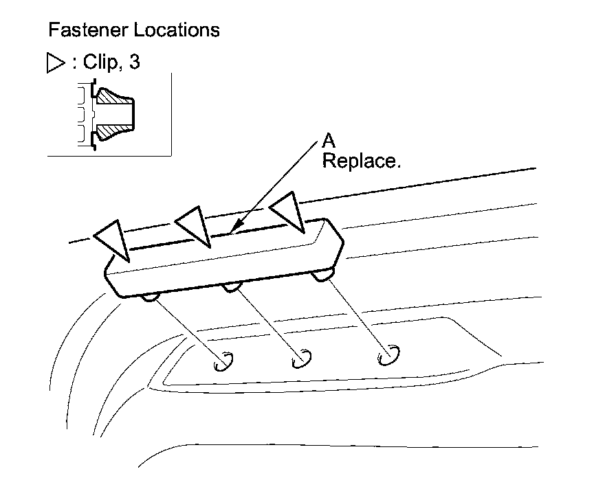 1. Remove the trunk lid cushion (A) by pulling it out to detach the clips.