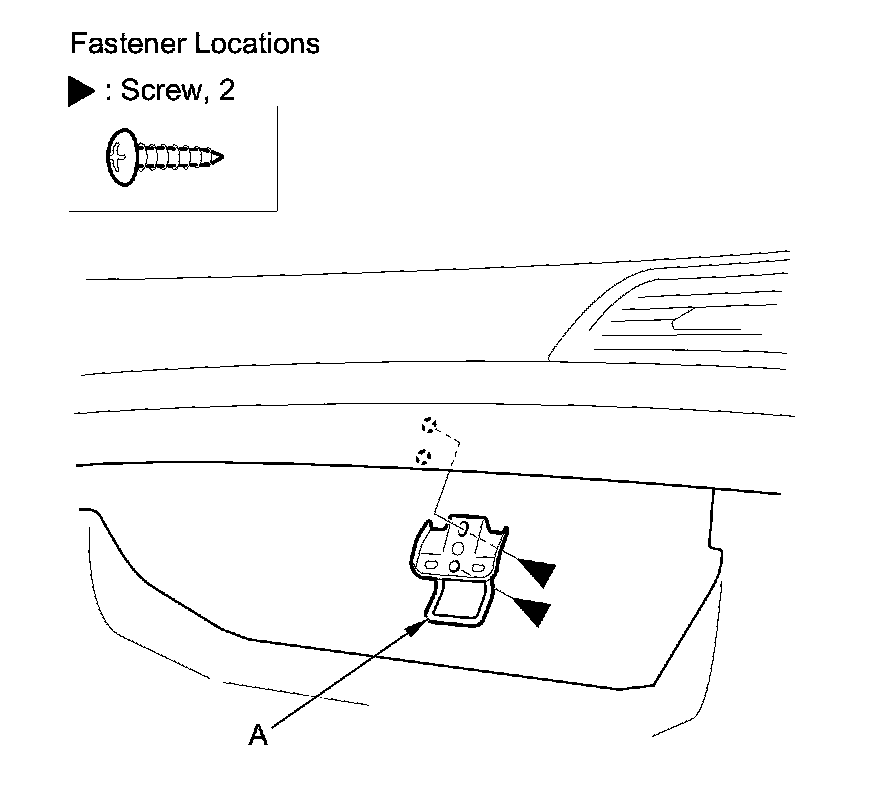 2. Remove the screws, then remove the glove box striker (A).