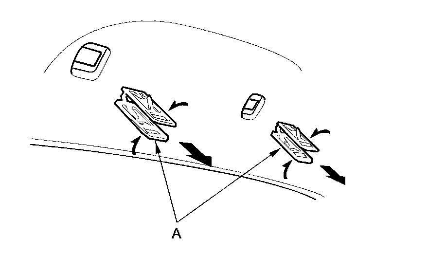 6. If the side curtain airbag has not deployed, inspect the grab handle (A) for damage. A damaged grab handle may cause the side curtain airbags to deploy improperly, possibly causing injury. Replace the grab handle if it has any of the following damage: