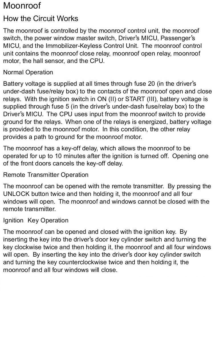 Sunroof / Moonroof: Description and Operation