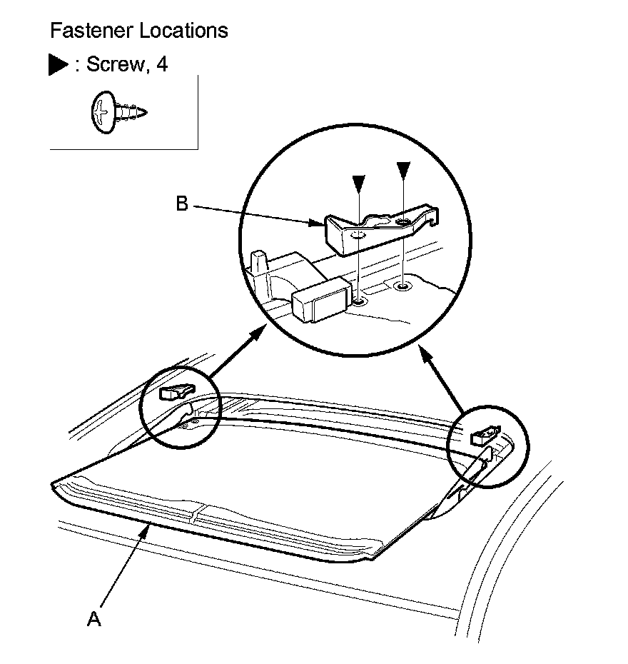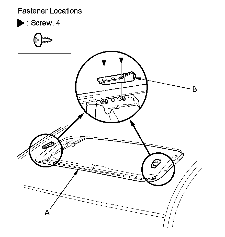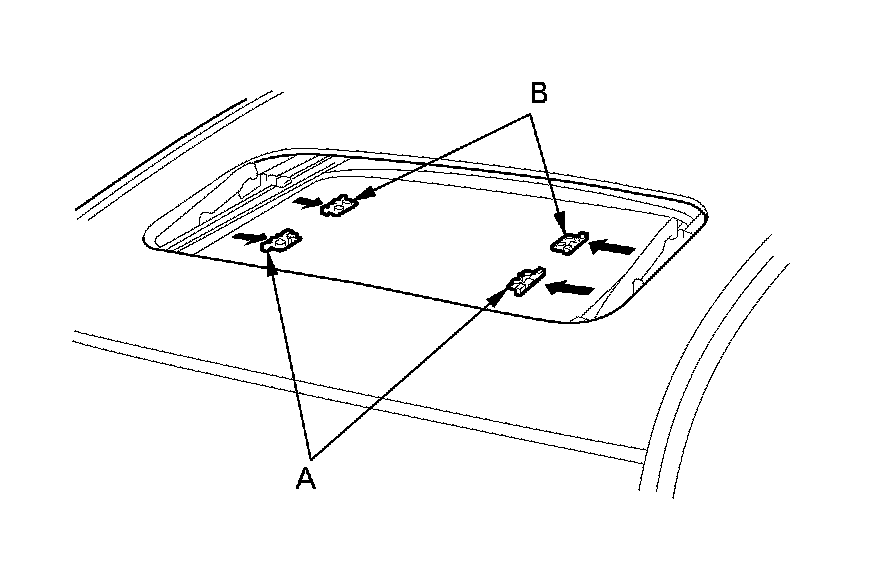 7. Remove both front sunshade base sliders (A) and both rear sunshade base sliders (B).