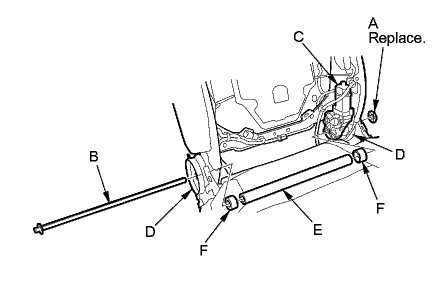 5. Remove the rod cover (E) and the collars (F).