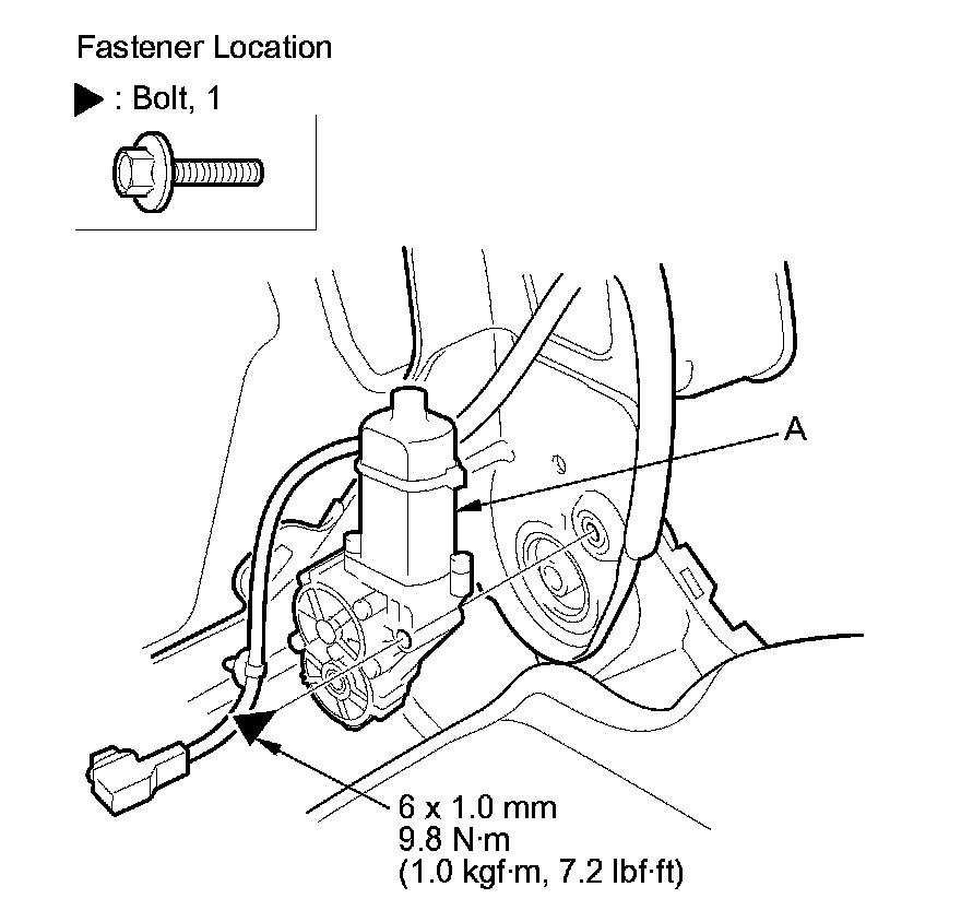 6. Remove the mounting bolt, then remove the recline motor (A).