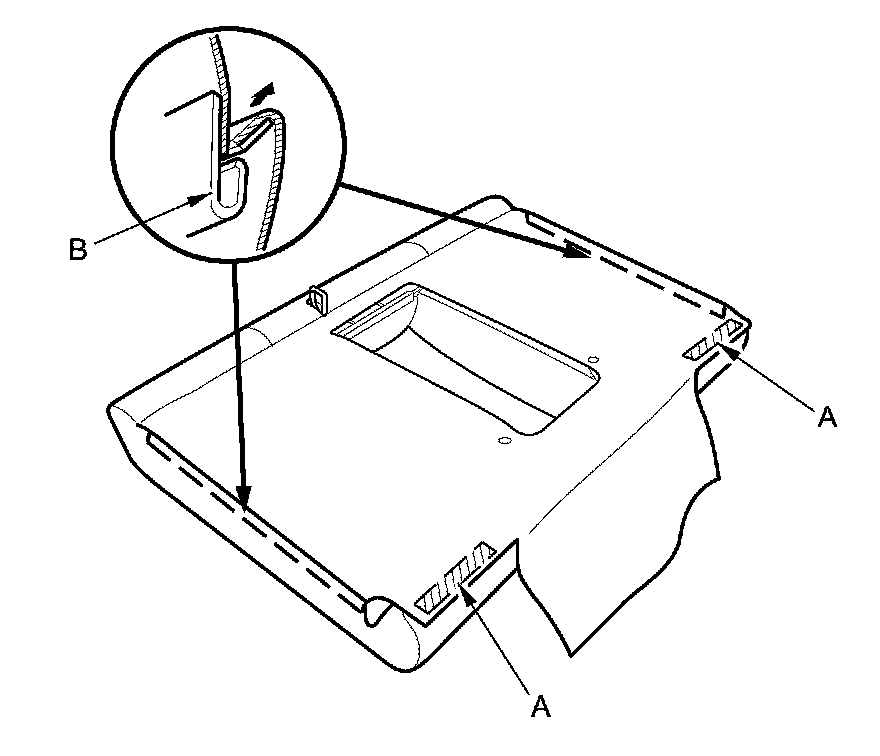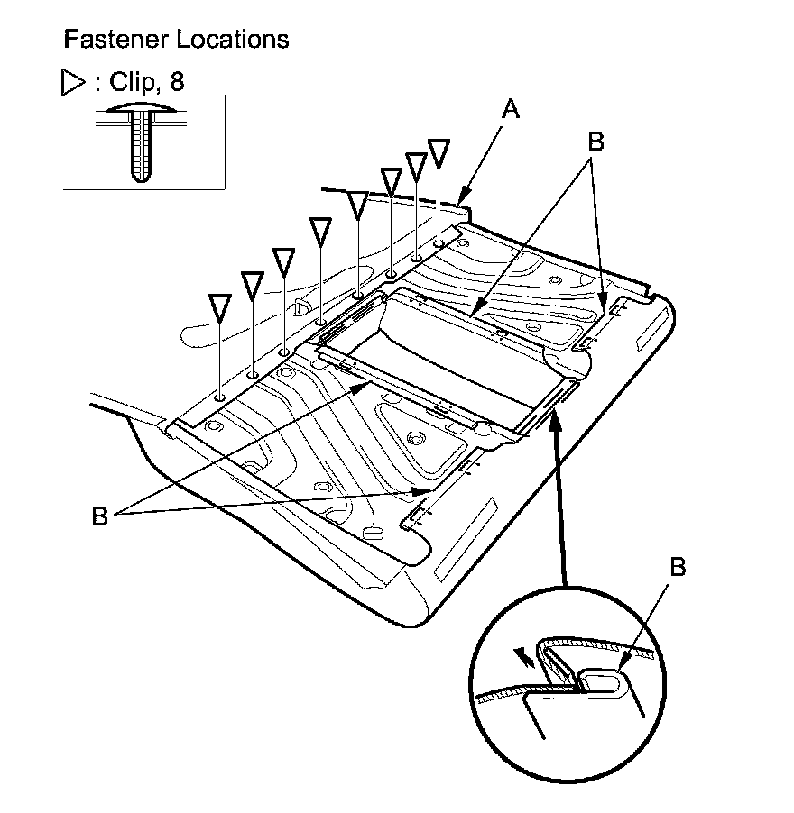 5. Turn over the seat-back cover (A), then release the hook strips (B), and remove the clips.