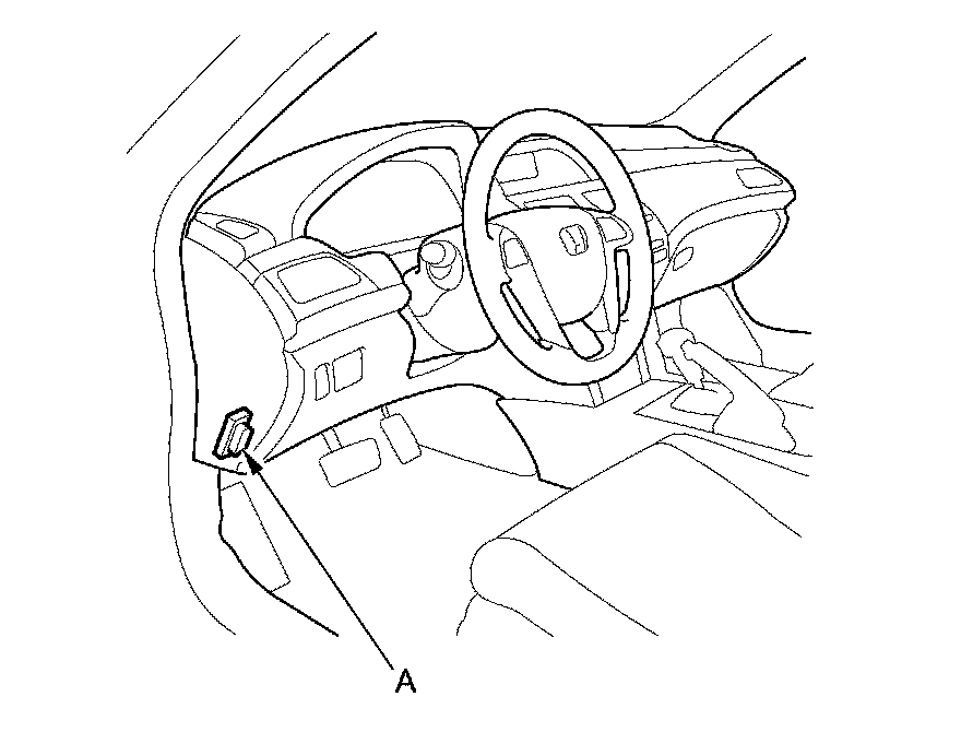 1. If the system indicators stay on, connect the HDS to the data link connector (DLC) (A) located under the driver's side of the dashboard.