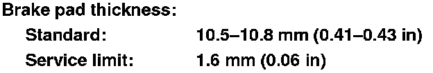 6. If any part of the brake pad thickness is less than the service limit, replace the front brake pads as a set.