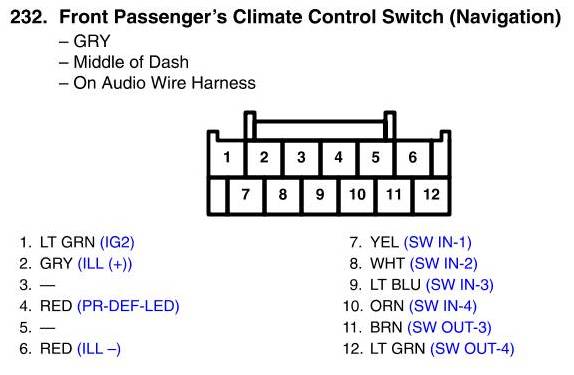 Front Passenger's Climate Control Switch Connector View (Navigation)