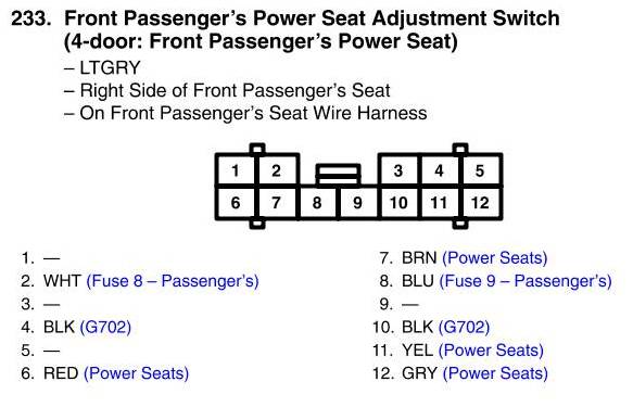 Front Passenger's Power Seat Adjustment Switch Connector View (4-Door: Front Passenger's Power Seat)