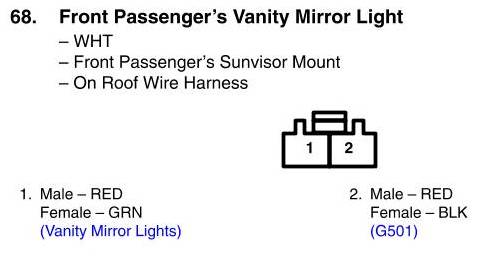 Front Passenger's Vanity Mirror Light Connector View