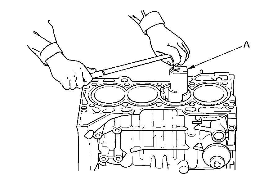 18. If you can feel a ridge of metal or hard carbon around the top of each cylinder, remove it with a ridge reamer (A). Follow the reamer manufacturer's instructions. If the ridge is not removed, it may damage the piston as it is pushed out.
