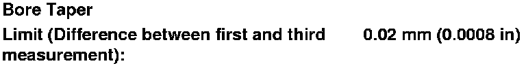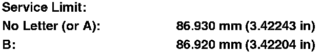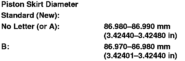 7. Calculate the difference between the cylinder bore diameter and the piston diameter. If the clearance is near or exceeds the service limit, inspect the piston and the cylinder bore for excessive wear.
