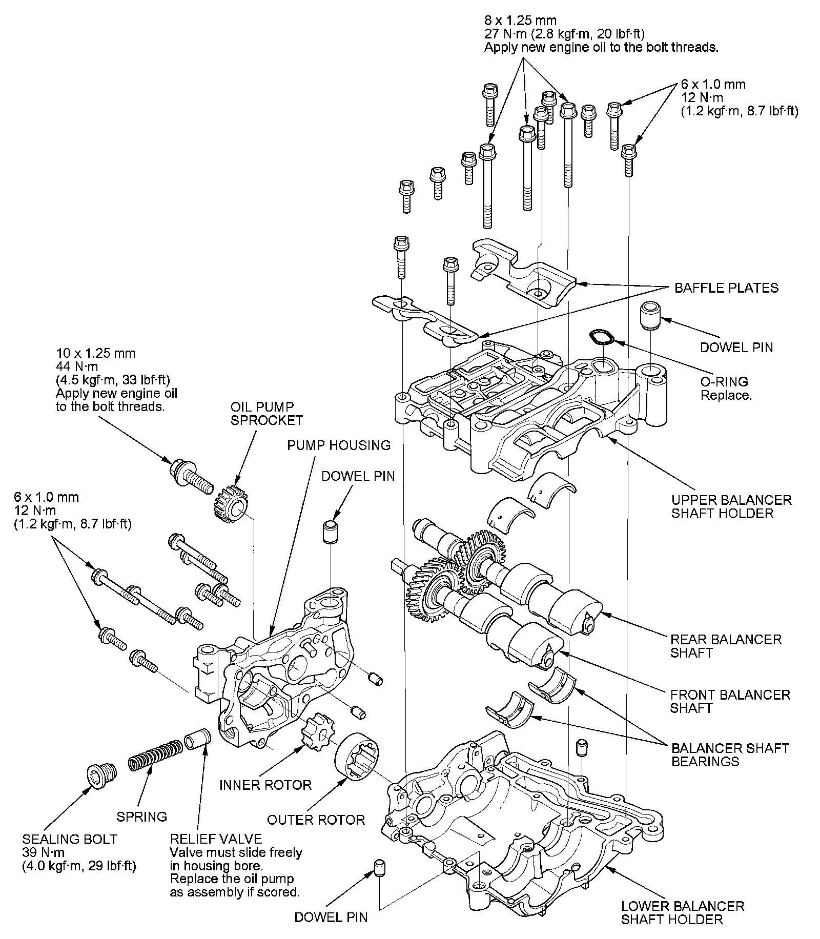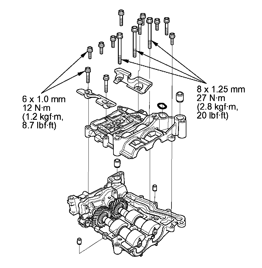 9. Reinstall the bearings and the upper balancer shaft holder, then tighten the bolts.