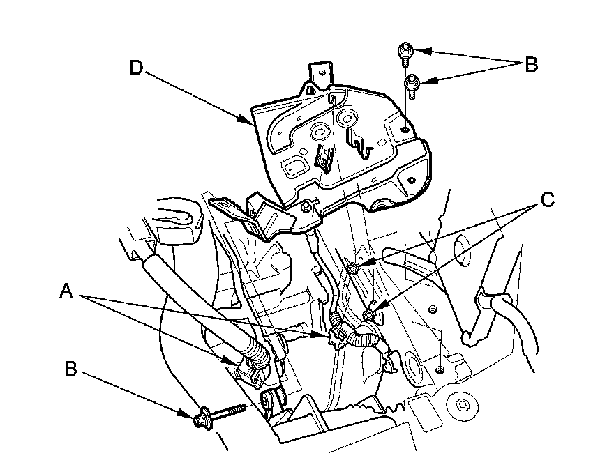 48. A/T model: Remove the rear engine mount upper bracket (C).