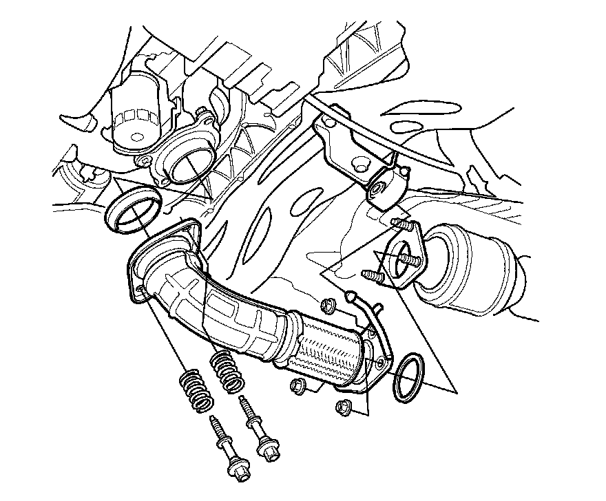 61. Remove the upper transmission mount bracket mounting bolts (A).