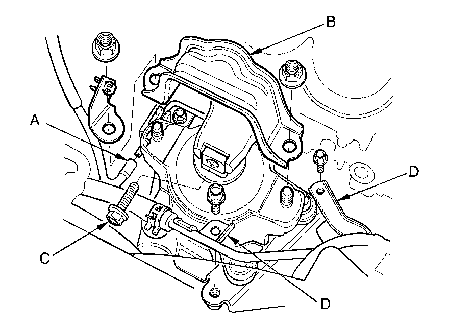 NOTE: Do not remove the TORX bolt (B) from the upper transmission mount. If the TORX bolt is removed, the upper transmission mount must be replaced as an assembly.