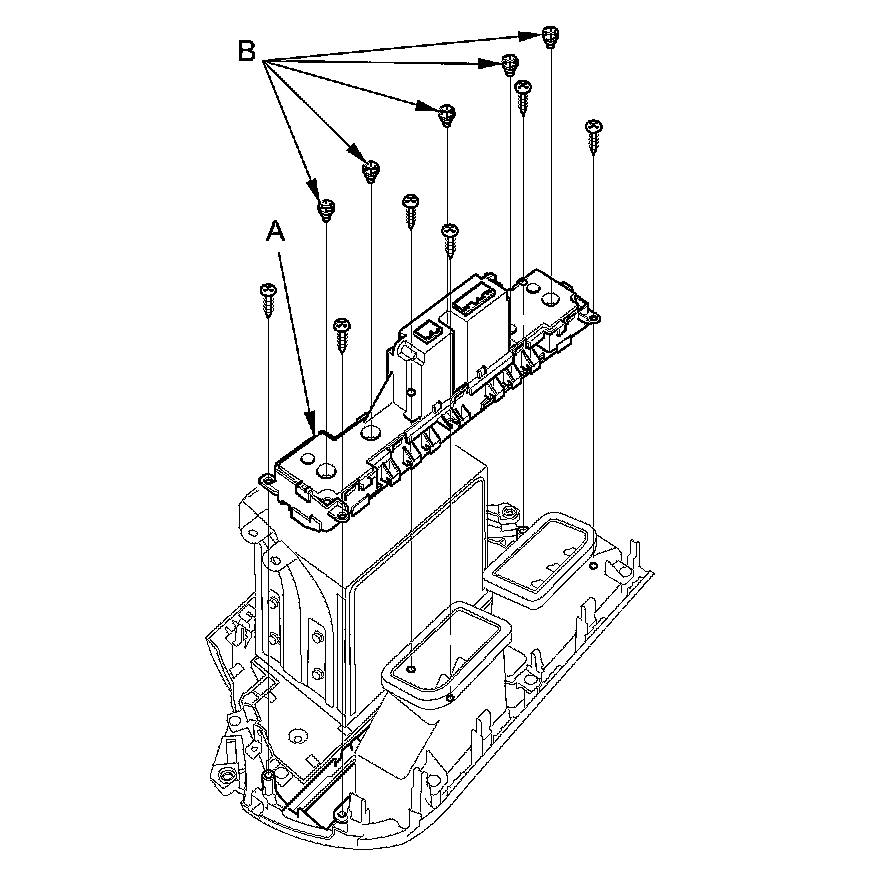 2. Remove the self-tapping screws and the climate control unit (A). If necessary, replace the bulbs (B) with a flat-tip screw driver.