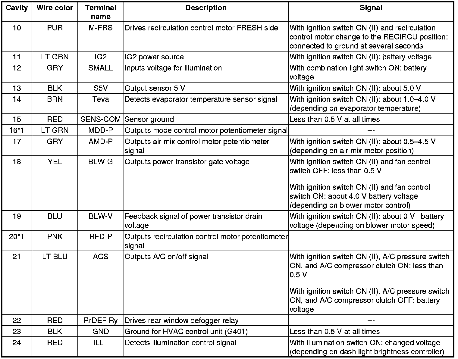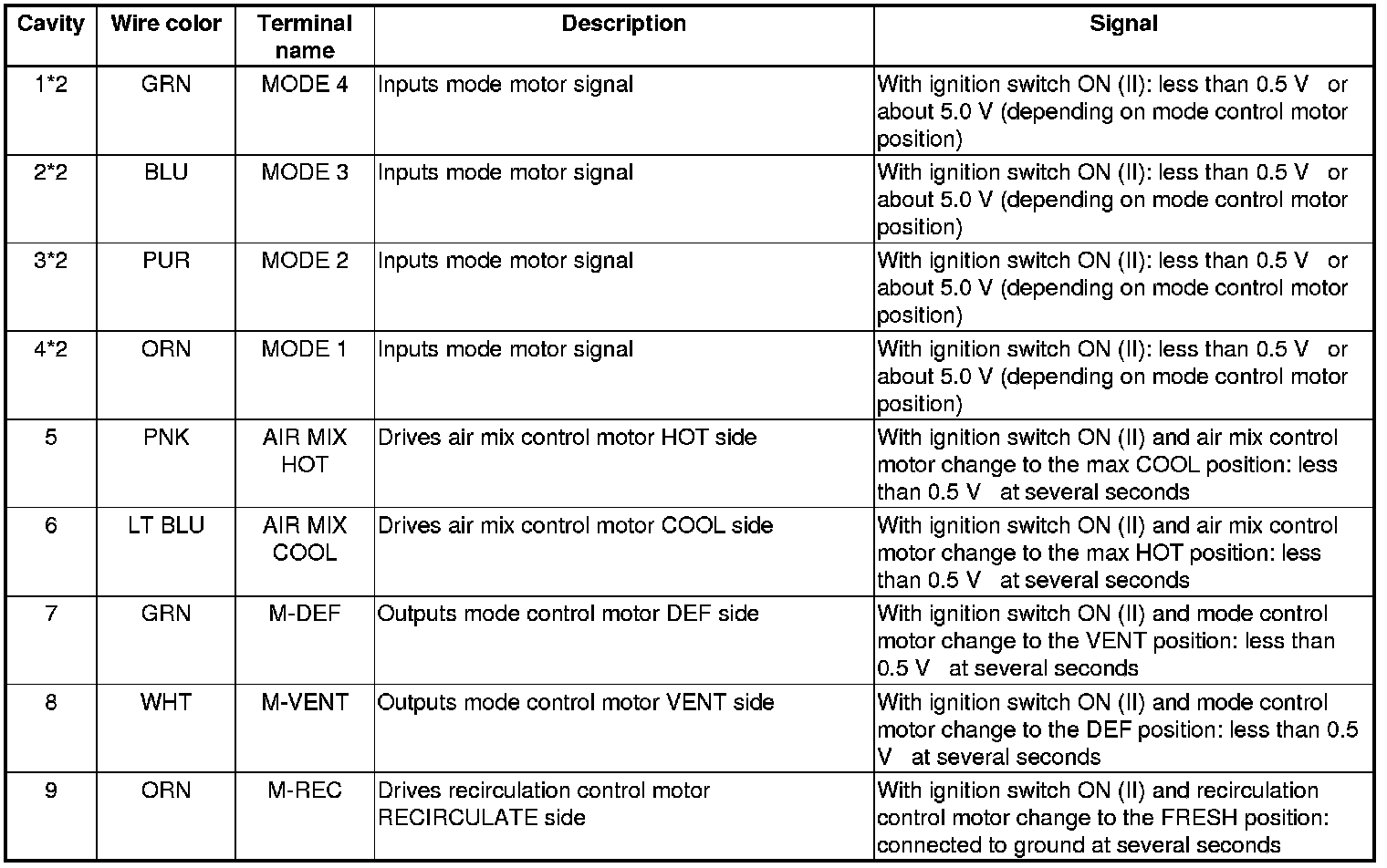 Heating/Air Conditioning Door Positions