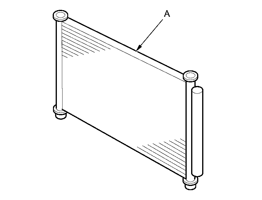5. Check the A/C condenser (A) for material clogging the fins (dirt, insects, etc.). If the A/C condenser is clogged or restricted, carefully clean any material from the A/C condenser fins with water and detergent. If deeper cleaning is required, clean the fins with HondaBrite cleaner (P/N 08732-0020B). Be sure to dry the A/C condenser completely.