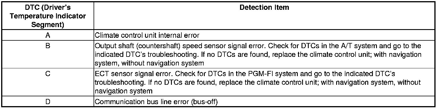 - If there is a problem with the system, the temperature indicator flashes 88, and the A/C ON indicator or the AUTO indicator (or both) also flashes. Segments in the temperature indicator then indicate which DTCs are present.