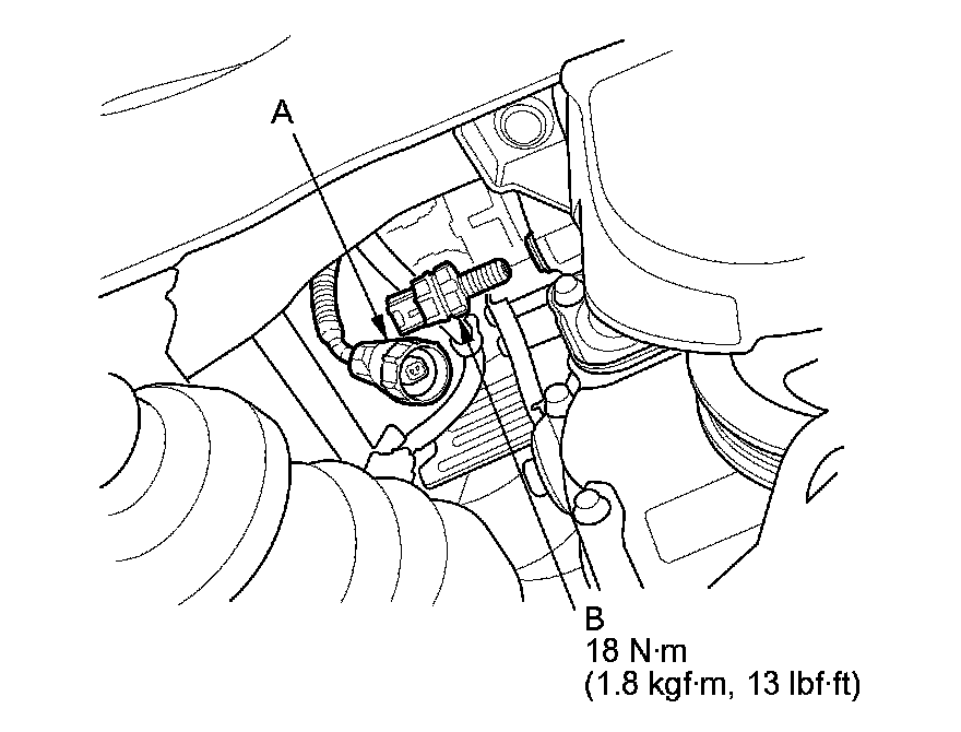 1. Disconnect the oil pressure switch connector (A), then remove the oil pressure switch (B).