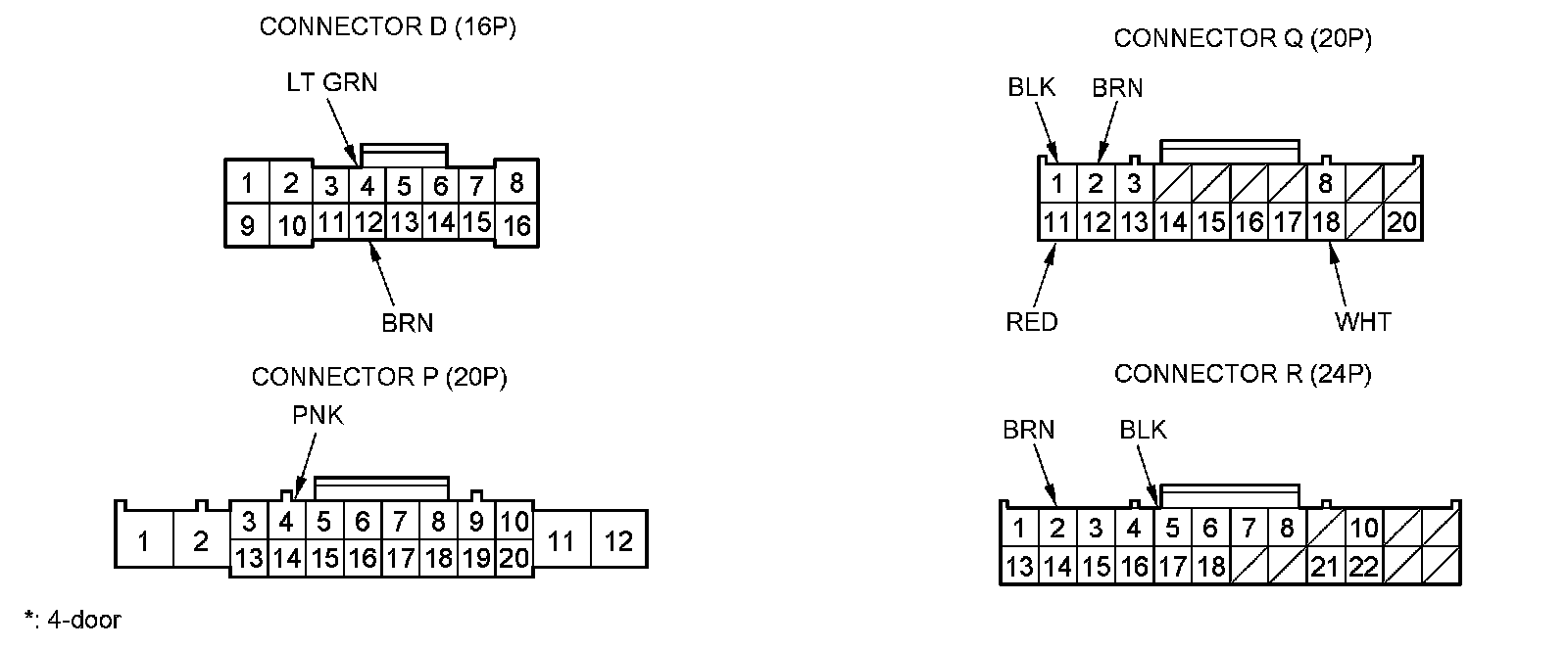 2. Disconnect driver's under-dash fuse/relay box connectors D, P, Q, and R.