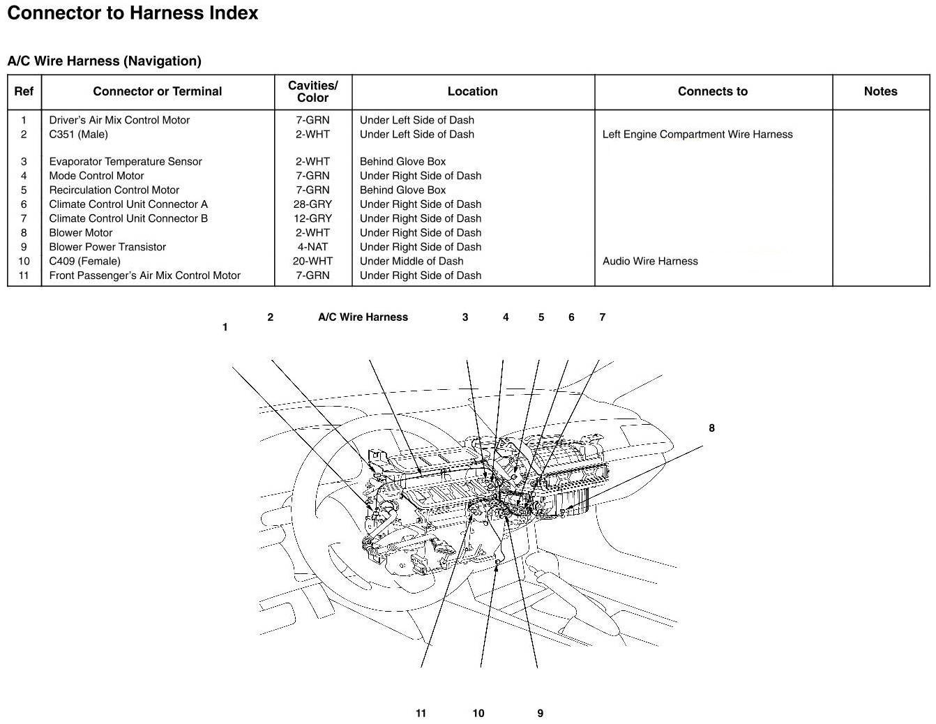 A/C Wire Harness Connector And Harness Locations (Navigation)