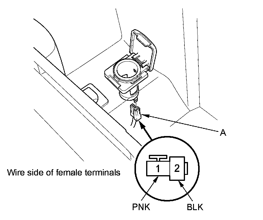 6. Measure the voltage between console accessory power socket 2P connector terminal No. 1 and body ground. There should be battery voltage.