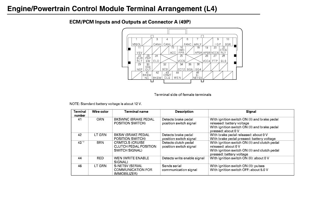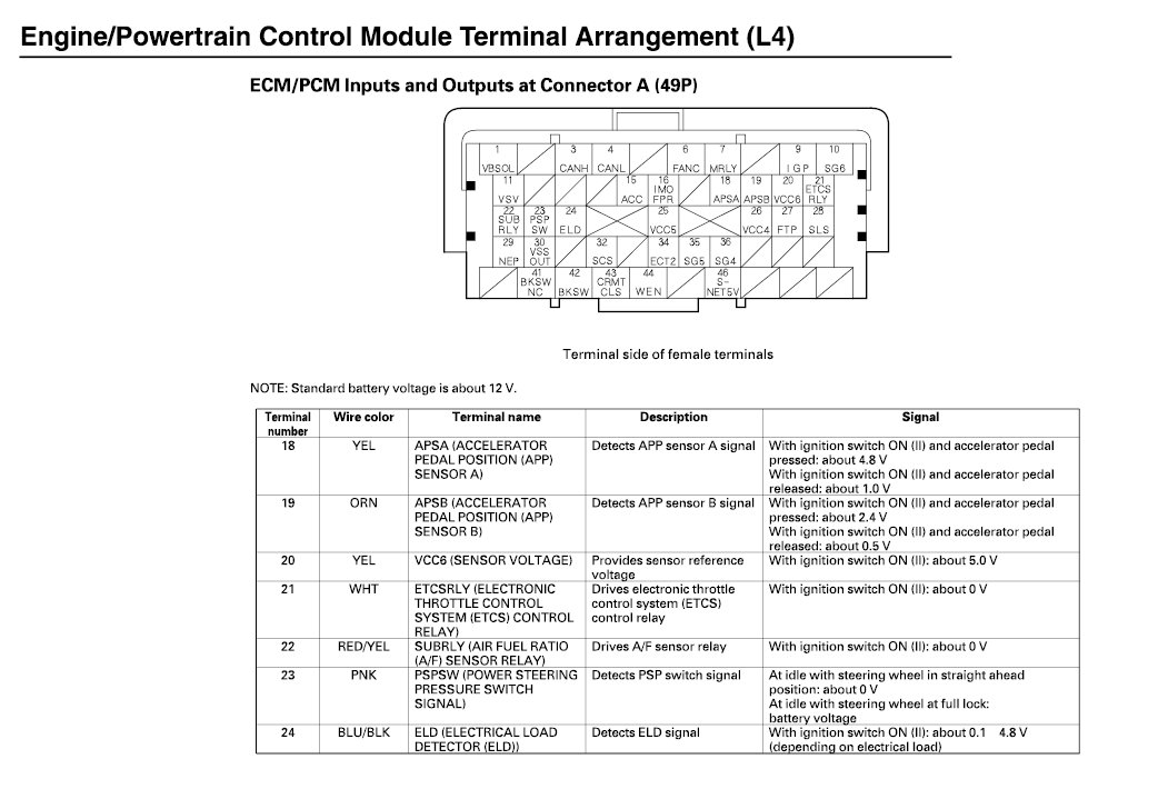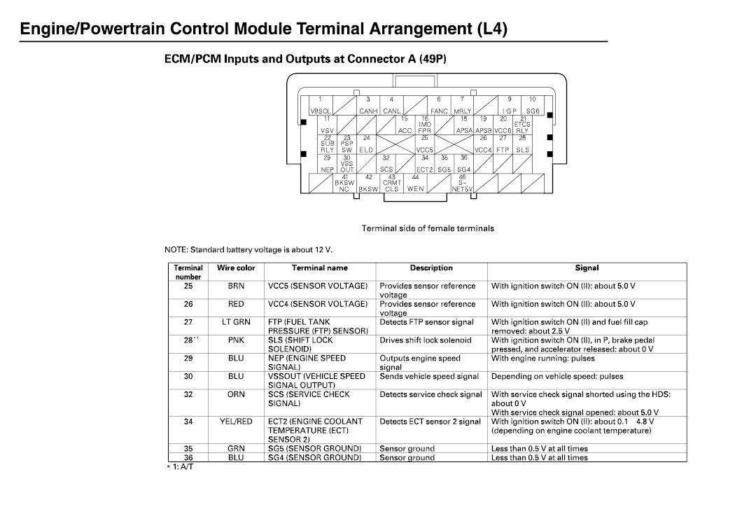 ECM/PCM Inputs And Outputs At Connector A