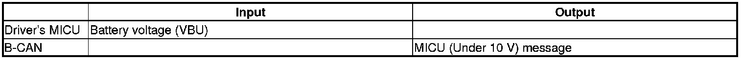 The driver's MICU monitors the power supply voltage (back-up voltage). If the voltage goes below 10 V, the driver's MICU will not store a DTC.