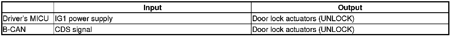The driver's MICU control of the door lock actuators is based on IG1 and SRS (CDS) inputs.