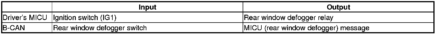 The driver's MICU control of the rear window defogger timer is based on the ignition switch and rear window defogger switch inputs.