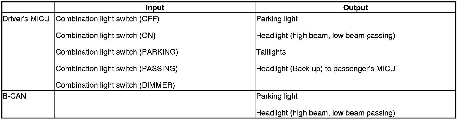 The passenger's MICU control of the front passenger's side headlight, and parking lights is based on inputs from the driver's MICU.