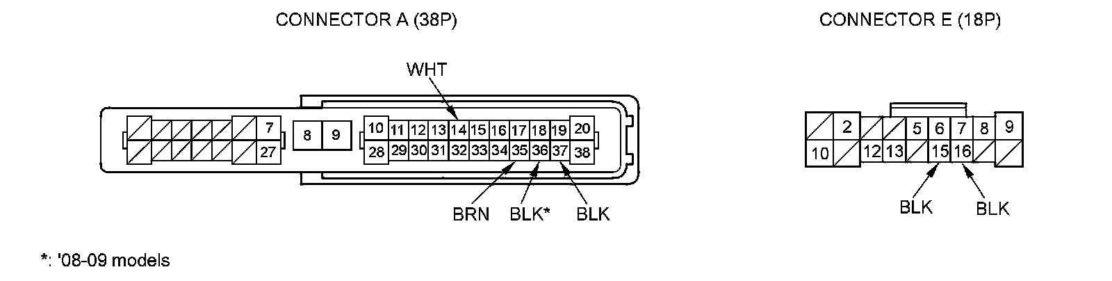 NOTE: All connector views are wire side of female terminals.