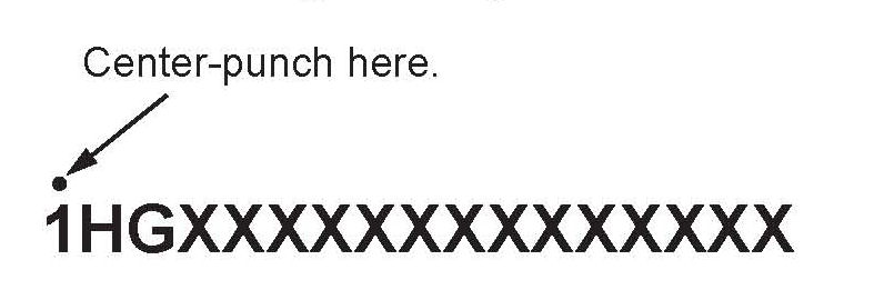 20. Center-punch a completion mark above the first character of the engine compartment VIN.