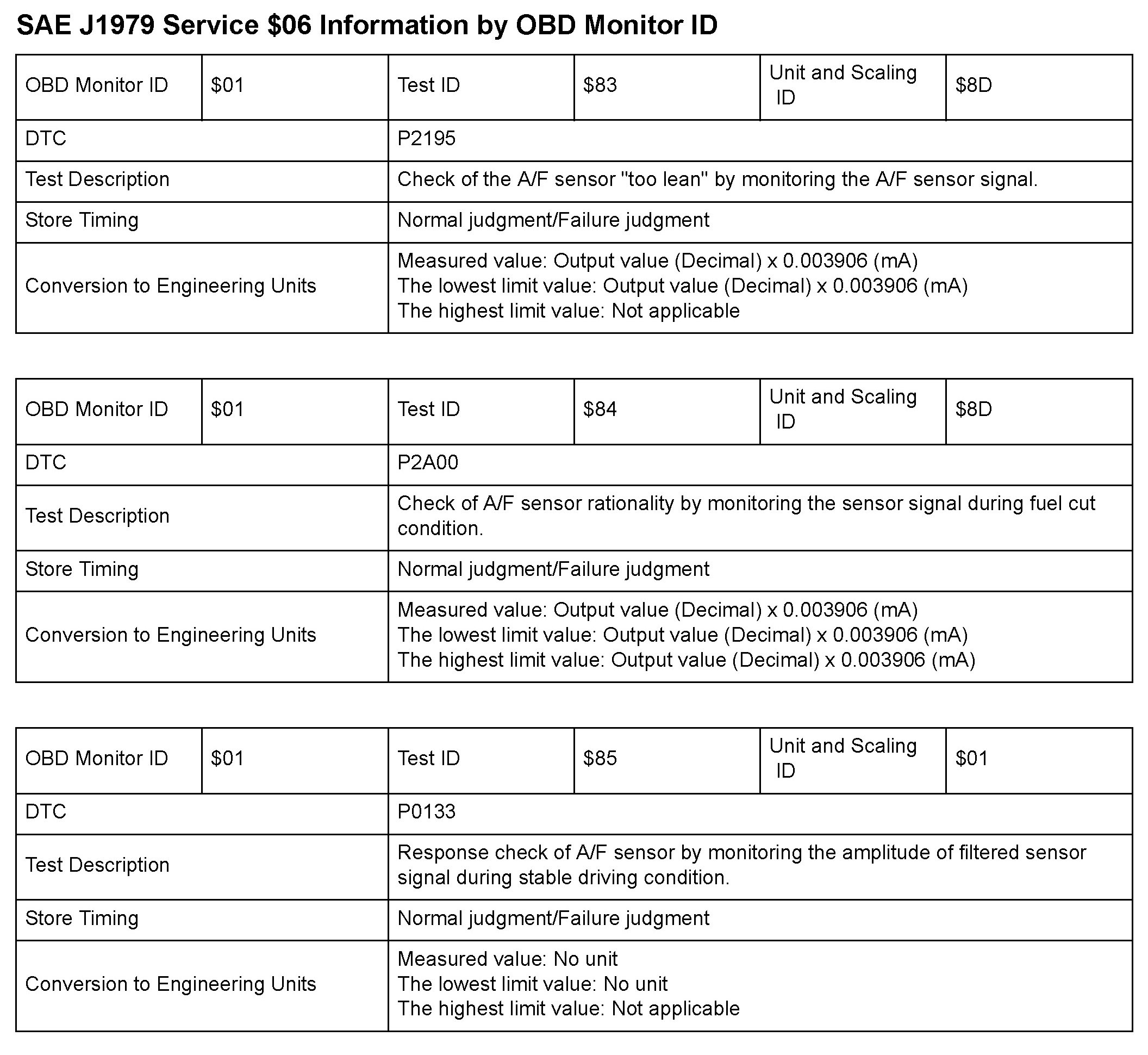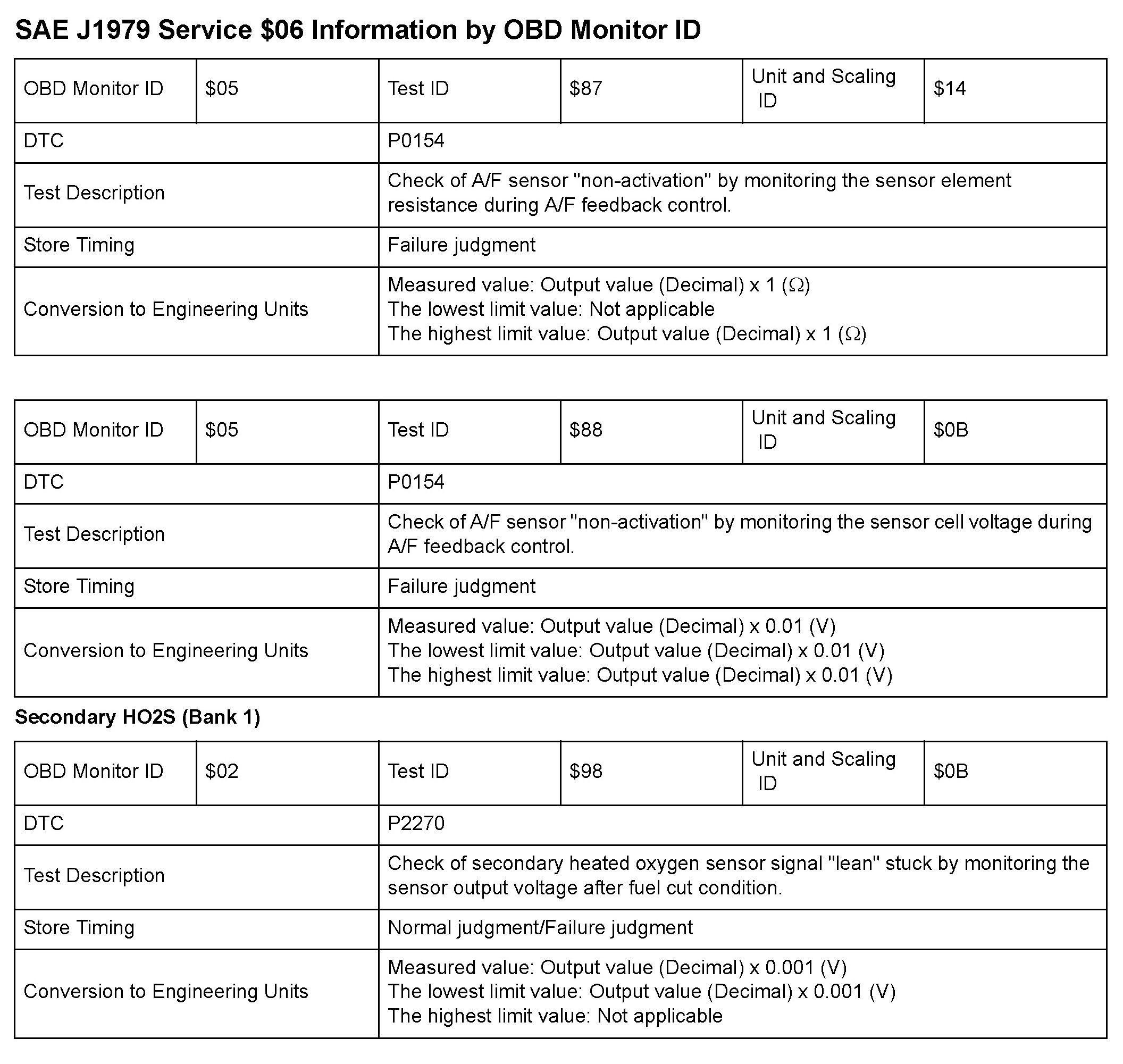 SAE J1979 Mode/Service $06 Test Information: All 2010 Hondas
