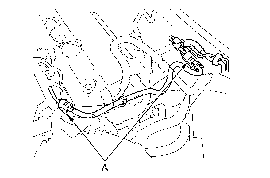 6. To prevent damage and keep foreign matter out, cover the disconnected connector and line ends with plastic bags (A).