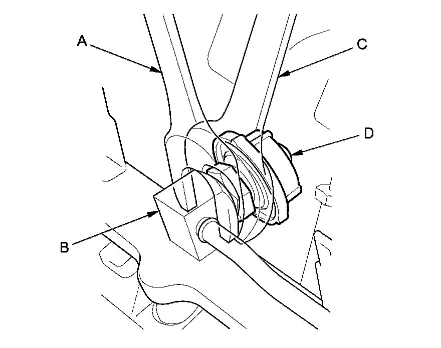 4. Place a wrench (C) on the fuel pulsation damper (D), and loosen it.