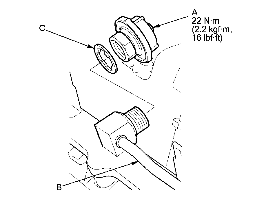 6. Install the parts in the reverse order of removal with a new sealing washer (C).